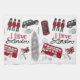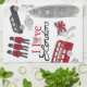 Eine Spaß London-Andenken, die Schlosswachen, Big Ben, rote Telefonzellen und den ikonenhaften Doppeldeckerbus auf einem nützlichen Geschirrtuch kennzeichnet. Rot, weiß, schwarz und Grau.