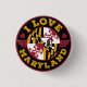 Ich Liebe Maryland State Flag and Map. Dieses Design, das sich von der Staatsflagge inspirieren lässt, zeichnet sich durch ein Schwarz, Gelb, Rot und Weiß-Farbschema sowie durch rote Herzen aus. Dieses umrahmt das zentrale Motiv von der Staatsflagge, mit der oben überlagerten Staat-Karte. Mit cool bedrückter Typografie mit dem Satz 'I LIEBE MARYLAND'.