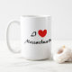 Benutzerdefinierte Tasse mit trendigem minimalistischem Textdesign mit rotem Herz und "I Liebe Massachusetts" in der Schriftzeichen-Schrift! Machen Sie es ein schönes Geschenk für sich selbst oder für jeden, der Massachusetts Liebe. Erhältlich in verschiedenen Stilen und Farben. Wählen Sie 11oz oder 15oz Kaffee Tasse.