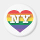 Dieser Magnet verfügt über ein Regenbogenherz, das die fetten, weißen Hauptstädte NY enthält, die offizielle Abkürzung für New York, den Empire State. Zeigen Sie Ihre wahren Farben, unterstützen Sie die Gleichheit der Ehen und feiern Sie Gay Pride.