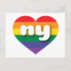 Auf dieser Postkarte finden Sie das Herz eines Regenbogenbruchs und die fett-weißen Kleinbuchstaben, eine spielerische Abkürzung für New York, den Reichsstaat. Die Rückseite der Postkarte ist leer und wartet auf Ihre handgeschriebenen Stimmungen oder Ihren personalisierten Text. Zeigen Sie Ihre wahren Farben, unterstützen Sie die Gleichheit der Ehen und feiern Sie Gay Pride.