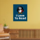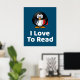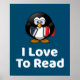 Niedlicher und lustiger Pinguin "I Liebe To Read", der seine Bücher hält.