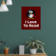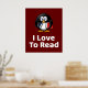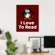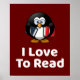 Niedlicher und lustiger Pinguin "I Liebe To Read", der seine Bücher hält.