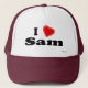 I Liebe Sam! Ist Ihr Name Sam? Haben Sie eine Ehefrau, eine Freundin, weibliches ein Familienmitglied oder einen weiblichen Freund, denen Sie Lieben Sie kennen? Oder haben Sie einen Ehemann, einen Freund, männliches ein Familienmitglied oder einen Mann Freund genanntes Sam, der Sie Liebe tief? Wenn ja dieses "ich Liebe" Hut bin genau nach das Geschenk, dem Sie suchen! Die Ausrüstungsbeschreibungen der Buchstabe "ich" in der schwarzen Beschriftung mit einem roten Herzen auf der Spitze und "dem Sam" in der schwarzen Beschriftung auf der Unterseite.