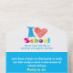 Ich Liebe Schule. Zurück zur Schule. Lehrertag, Cartoon Illustration farbenfrohe Abschluss Einladungskarte. Kinder Party. Personalisierte All-In-One-Einladungen sind eine einzigartige Kombination aus einer schön bedruckten, individuellen Einladung und einer leicht abzureißenden, perforierten UAWG-Postkarte