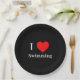 I Liebe Schwimmen Typografie & Rotes Herz Schwarz Pappteller