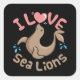I Liebe Seelöwen Quadratischer Aufkleber