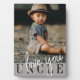 Moderne Foto-Plakette mit Single-Foto eines Kindes und ''I Liebe you Oncle'' in moderner Schrift auf grauem Hintergrund. Schönes Geschenk für Väter.