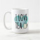 Dieses niedliche und einzigartige Design der Tasse zeigt die Worte "I Liebe Tee" auf einem aquafarbenen Herz und eine kleine Abbildung einer dampfenden Tasse. Das perfekte Geschenk für diesen besonderen Teetrinker in Ihrem Leben!
