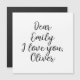 Niedliche personalisierbare Textvorlage: Liebe Emily, ich Liebe Sie, Alexander. Klicken Sie auf Bearbeiten und ändern Sie nur die Namen oder den gesamten Text.