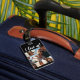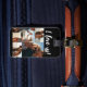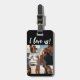 Modernes Schwarzweiß-Foto "I Liebe us" mit Pinselschrift "I" sammelt Gepäckanhänger mit personalisiertem Namen und Adresse.