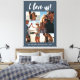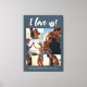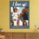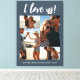 Moderne blau-weiße "I Liebe us" Pinselskript Foto Collage Leinwand mit personalisiertem Namen und Jahr.