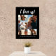 Moderne Schwarz-Weiß-Leinwand "I Liebe us" Pinselskripte Foto Collage mit personalisiertem Namen und Jahr.