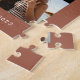 Moderne Terrakotta und Weiß "I Liebe us" Pinselskript Foto Collage Puzzle mit personalisiertem Namen und Jahr.