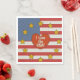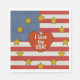 Dieses Party Napkins zeigt Leslie Sigal Javoreks köstlich originelles patriotisches Design, basierend auf der amerikanischen Flagge: mit/abwechselnd polka-gepunkteten Streifen in Rot und Weiß; ein polka-gepunkteter blauer Block in der links oberen Ecke; überragt mit einem Kranz aus scharfen Senfstern, der ein zartes rotes Herz umgibt und "I Liebe USA!"