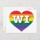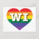 Auf dieser Postkarte befindet sich ein Regenbogenherz mit den fett-, weiß-, Hauptstadt-Buchstaben WI, der offiziellen Abkürzung für Wisconsin, dem Staat der Plakatwand. Die Rückseite der Postkarte ist leer, wartet auf Ihre handgeschriebenen Stimmungen oder Ihren personalisierten Text. Zeigen Sie Ihre wahren Farben, unterstützen Sie die Gleichheit der Ehen und feiern Sie Gay Pride.