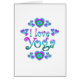 Teilen Sie Ihre Liebe für Yoga mit diesem bunten Entwurf mit Herzen und dem Wörter I Liebe-Yoga.