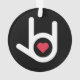 Ein Sprichwort in weißer Handform "I Liebe You" mit einem roten Herzchen im Handkreis vor schwarzem Hintergrund.