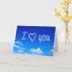 "I Liebe You" geschrieben im Himmel, wunderschöner blauer Himmel mit weißen flauschigen Wolken, Grußkarte.