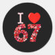 I Love 67 Valentine Heart_ Funny Meme Number 67 Te Runder Aufkleber