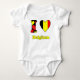 I heart Belgium romper voor baby's. Tekst: Ik hou van België. Afbeelding: Hart in de Belgische vlag.