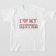 I love my sister t-shirt for kids. The design features a pink heart and cute pink letters. Great way for your kid to show love for their sister.