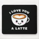 I Love You A Latte Funny Cute Coffee Heart Valenti Mousepad