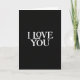 This greeting card has a deep black background with no extra images or borders. In the center, it says “I LOVE YOU” in white serif letters that look classic and easy to read. The words are large and evenly spaced, so your eyes go straight to the message. The strong contrast between the white text and the black background makes the message feel serious, steady, and heartfelt. Up close, the white letters have a faint texture that adds a gentle, human touch instead of looking flat. With nothing else on the card, the focus stays on love and the meaning behind those three words ❤️💌. It’s a great choice for a partner, close friend, or anyone you want to remind how much they matter, and it pairs nicely with a sweet treat like 🍫.