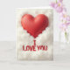 This greeting card shows a big, plump red heart near the top center, with a smooth matte look that feels calm and loving. The heart sits in a soft white, cloud-like surround that wraps around it like a gentle hug. The red against the white is simple and striking, making the main message easy to feel at a glance. Below the heart, the words “I LOVE YOU” appear in red letters that look slightly raised, giving them a subtle 3D effect. The lettering is in all caps and placed neatly in the lower center, so your eyes move from the heart down to the message. The soft lighting and mild shadows make everything look cozy and comforting, like a warm moment held still. It’s a meaningful card to give because it says what you mean without needing anything extra, whether for a partner or someone you care about 🥰❤️.