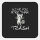 I Love You More Than Trash Funny Raccoon Humor Quadratischer Aufkleber