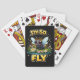 A cheerful cartoon fly with oversized red eyes stands proudly on a lily pad beneath a sparkling night sky, celebrating humor, confidence, and playful charm.