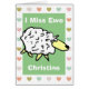 Die lustige Schafskarte sagt "I Miss Ewe" - ein Wortspiel. Personalisieren Sie Ihre Auswahl an Namen und Insider-Nachrichten.