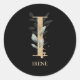 Letter I monogramm floral. Letter I in goldbrauner Textur mit grünen Aquarellmischungen Blätter, Blume Blüten und geschmolzenen Goldspritzen. Personalisiert mit Namen in passendem Schriftart.