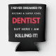 I Never Dreamed I'd Become A Super Cool Dentist But Here I Am Killing It design. This is a short funny quote which is great as an appreciation gift idea for Dentists. Also suitable as Dentist Gifts.