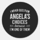 I Never Question Angela's Choices Because I'm One Runder Aufkleber