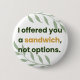 Add a slice of sass to your laptop, water bottle, journal, or wherever you want with this bold and witty vinyl sticker! Featuring the hilarious phrase “I offered you a sandwich, not options,” this sticker is perfect for anyone who loves straightforward humor with a side of sarcasm.