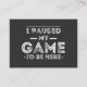 I Paused My Game to Be Here Graphic Sarcastic Fun Visitenkarte