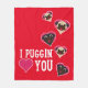 I Puggin Liebe Sie Valentine-Fleece-Decken-Rot