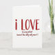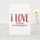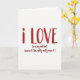 This greeting card shares a heartfelt message with a bold, personal look. Set on a bright white background, the words “i LOVE” appear centered in deep red lettering that looks hand-drawn and slightly uneven, giving it an honest, written-by-hand feel ❤️. The letters are thick and easy to notice, so the message stands out right away. Just below, a smaller line reads “(in a big red font because I like, really really mean it!),” written in a lighter, more casual style that feels like a quiet aside to the reader 💌. With no images or extra details, the focus stays on the words and the meaning behind them. The open space around the text adds a calm, thoughtful tone, making this card a lovely choice for a partner or close friend when you want your feelings to be clear and sincere on Valentine’s Day
