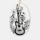 Die Liebe und die Freude an der Gitarre, die süße Musik zu Ihrem Ohr. Graue und schwarze Gitarre mit schwarzen Musiknoten und Herzen.
