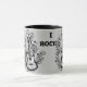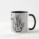 Tasse, Kaffee-Tasse: (zum Bearbeiten klicken) Die Liebe und die Freude an der Gitarre. Graue und schwarze Gitarre mit schwarzen Musiknoten und Herzen.