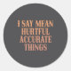 I Say Mean Hurtful Accurate Things Runder Aufkleber