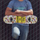 Retro-Deck mit groben Blume in kräftigen Farben mit schwarzen Konturen. Dieses "Weg zurück" Design ist wieder frisch und neu. Großartiges Geschenk für Ihren Lieblings-Skater! Sie Skater werden dieses lustige, moderne Blumendesign Liebe geben. "Ich Skate also bin ich" ist bereit für Sie, den Namen hinzufügen, um es anzupassen!