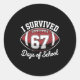 I Survived 67 Days Of School Funny Football Runder Aufkleber