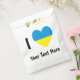 An die Stelle des Wortes LIEBE wird eine herzförmige Flagge der Ukraine verwendet. Das Design wurde geschaffen, um dem Käufer zu ermöglichen, mit dem eigenen Text des Käufers zu personalisieren, was geliebt wird. Der Käufer kann auch ein Geschenk anpassen. Es würde lesen, ich LIEBE IHREN TEXT. Die ukrainische Fahne hat einen großen blauen Raum oben mit einem großen gelben Platz darunter.