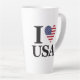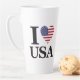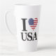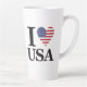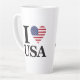Genießen Sie Ihre Lieblings-Latte, Tee oder heiße Schokolade im Stil dieser eleganten "I ❤️ USA" latte Tasse. Das elegante, hohe Design präsentiert wunderschön die ikonische Grafik "I ❤️ USA", in der die amerikanische Fahne im Herzen steht. Ideal für gemütliche Morgenstunden, patriotische Feierlichkeiten oder als nachdenkliches Geschenk für jeden stolzen Amerikaner, ist diese Tasse eine ideale Möglichkeit, Ihre Liebe für Getränke und Land zu kombinieren.