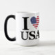 Erleben Sie die Magie des Patriotismus mit dieser farbenverändernden Tasse "I ❤️ USA"! Sehen Sie sich an, wie sich das fette "I ❤️ USA"-Design mit der amerikanischen Flagge in einem Herzen zeigt, wenn Sie in ein heißes Getränk gießen. Es ist eine angenehme Überraschung für Ihren morgendlichen Kaffee oder Tee, ideal um nationale Feiertage zu feiern, einem stolzen Amerikaner zu schenken oder einfach eine Touch patriotischen Wunder in Ihren Alltag zu fügen. Diese einmalige Tasse ist eine unterhaltsame und interaktive Art, Ihre Liebe für die Vereinigten Staaten zu zeigen.