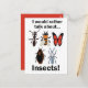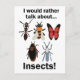 I Would Rather Talk About Insects Entomologists Postcard originally designed by Nisha Prabhu. Share your passion for insects with this beautifully designed postcard! Featuring the playful phrase 'I Would Rather Talk About Insects,' it’s perfect for entomologists who love to connect and share their bug enthusiasm. This postcard makes a fun and unique way to send a message or inspire fellow insect lovers. Whether for a friend or a fellow scientist, it’s a delightful keepsake that celebrates your love for the fascinating world of insects.