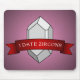 This product a model of a zircon crystal, a common requory mineral osed to date rocks. The text in the red banner reads "I Zircons Date." Crystal shape drawn based on sketches from Perkins and Henke, 2004. To change the background color, click on "Customize it!" und choose "Edit->Background."