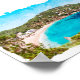 Schöne Ibiza Spanien Jahrgang Reise Postkarte zeigt die einzigartige Landschaft der spanischen Insel. Tolle Souvenir und Geschenkidee.